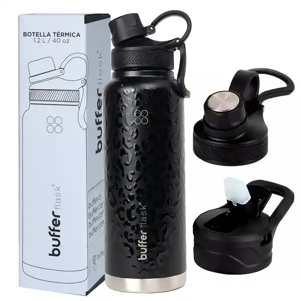 ¡Comodidad, seguridad e hidratación ante todo! La botella térmica Buffer de 1.2 Lt te permitirá mantenerte hidratado durante mucho más tiempo gracias a su gran tamaño, diseñada pensando en tu comodidad, incluye tapas para poder ocupar en distintos contextos. - Gran capacidad y comodidad: Cuenta con un diseño práctico y fácil de transportar, su tamaño es ideal para llevar contigo en todas, cuenta con tapas para que puedas elegir tu favorita según tus necesidades del momento. - Te ayudará a llevar tus bebestibles con mucho estilo, ideal para mantenerte sano tomando la cantidad correcta de agua al día. - Sabemos que es importante la temperatura dentro de tu botella, por eso tu botella térmica Buffer se mantiene ¡24 horas fría y 12 horas caliente! - Ideal para ocupar con bebidas frías y calientes: Las botellas Buffer se caracterizan por ser multifacéticas, es por esto que te permiten mantener bebidas frías y calientes sin problema. - Sus 2 tapas cuentan con sistema anti fugas, pudiendo darla vuelta, llevarla en tu bolso o cartera sin riesgo de derrames. - Su doble pared aislada al vacío, permite mantener la temperatura de los líquidos por mayor tiempo y al evitar la transferencia de temperatura elimina el riesgo de quemarte al portar líquidos calientes. - Tu botella Buffer no suda! No te volverás a encontrar con objetos o superficies mojadas alrededor. - Su manilla te ayudará a transportarla fácil y cómodamente. - Perfecta para acompañarte en tu día a día, salidas al cerro, paseos, trabajo y mucho más. - Práctica y fácil de llevar contigo a todos lados, ideal para utilizar en invierno y verano —------------------------------------------------------------------------------------------------------------------ FICHA TÉCNICA - Botella con 1200 ml con tapas + Pitillo plástica Buffer - Capacidad: 1200 ml - Libres de BPA - Para bebidas frías y calientes - Incluye tapas para distintos usos - Material Pitillo: plástico duro - Material Interior: Acero 100% inoxidable 304 —---------------------------------------------------------------------------------------------------------- ¿QUÉ TAPAS INCLUYE? Pitillo: ideal para bebidas frías, esta cómoda tapa incluye una Pitillo para beber tus líquidos favoritos. Rosca pequeña: Permite el paso de sorbos más pequeños de agua, ideal para utilizar en movimiento. —---------------------------------------------------------------------------------------------------------- QUE VIENE EN LA CAJA - 1 Botella térmica Buffer de 1200 ml - 2 tapas - 1 Pitillo plástico transparente