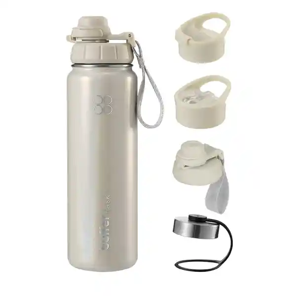 ¡Mantén la temperatura dentro de tu botella con Buffer! - Sabemos que es importante la temperatura dentro de tu botella, por eso tu botella térmica Buffer se mantiene ¡24 horas fría y 12 horas caliente! - Incluye 4 tapas diferentes, para las puedas intercambiar según tus necesidades. - Su doble pared aislada al vacío, permite mantener la temperatura de los líquidos por mayor tiempo y al evitar la transferencia de temperatura elimina el riesgo de quemarte al portar líquidos calientes. - Tu botella buffer no suda! No te volverás a encontrar con objetos o superficies mojadas alrededor. --------------------------------------------------------- FICHA TÉCNICA - Botella con 4 tapas para elegir Buffer - Capacidad: 700 ml - Libres de BPA - Material Interior: Acero 100% inoxidable 304 - Material Exterior: Revestimiento de cobre - Medidas boca botella: 6 cm - Medidas: 23,5 x 9 cm - Peso: 430 gr --------------------------------------------------------- QUE VIENE EN LA CAJA - 1 Botella térmica Buffer - 4 tapas para elegir
