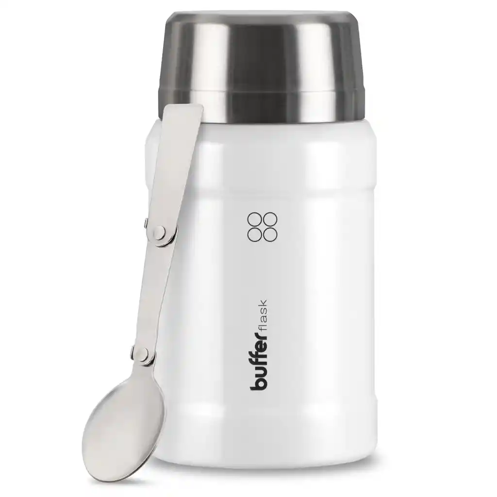 "¡Mantén la temperatura de tu comida y come donde tú quieras, con tu pack de Lonchera + Termo personal Buffer! - ¡Mantiene hasta 8 horas tu comida caliente! - La tapa rosca de tu termo Buffer está pensada para que la puedas usar al comer como recipiente y tiene un mango de agarre que hace más fácil su manipulación. - Incluye una cuchara plegable en la parte dentro que calza perfectamente para que no la lleves separada y traslades todo junto. - Incluye un bolso impermeable con cierre y mango, para transportar tu comida fácilmente donde tú quieras. - Tiene el tamaño perfecto, equivalente a un plato de comida. - Todas las piezas son de acero resistente y durable 100% inoxidable. - Fácil de lavar y no retiene olores. --------------------------------------------------------- FICHA TÉCNICA - Termo para alimentos Buffer - Capacidad: 800 ml - Libre de BPA - Material: Acero 100% inoxidable - Material base: Silicona antideslizante - Colores: Crema y Negro - Incluye 1 cuchara plegable y bolso impermeable para traslado - Medidas: 18,5 x 10 cm - Peso: 790 gr --------------------------------------------------------- QUE VIENE EN LA CAJA - 1 Termo para alimentos 800 ml Buffer - 1 Bolso impermeable para traslado - 1 Cuchara plegable **BUFFER® es distribuida en Colombia exclusivamente por Builder Commerce SAS** --------------------------------------------------------- PREGUNTAS FRECUENTES ¿Los productos tienen garantía? Sí. Todos nuestros productos cuentan con 1 año de garantía limitada contra defectos de fabricación. ¿El precio indicado incluye IVA? Si, si incluye IVA el precio publicado.