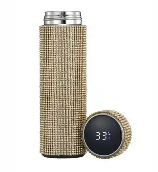 Termo Con Diamantes De Color DORADO Acero Inoxidable Botella Inteligente Temperatura Pantalla Led Vaso Ostenso, Regalo, Decoracion, Cumpleaños