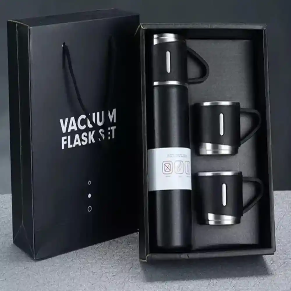 Botellas de agua de acero inoxidable, termo para bebidas frías y calientes, 1 termo + 3 tazas de tapa, 16.9 onzas, acero inoxidable (azul, negro, gris) Ideal para niños, adultos, lugar de trabajo, estudiantes universitarios, senderismo, viajes por carretera, picnics y actividades al aire libre Ventaja: el juego incluye 3 tapas de taza de viaje, que pueden funcionar como tazas de servicio de aislamiento térmico. Regalo perfecto: este producto, que es una alternativa de regalo perfecta con su elegante diseño de paquete, es un gran regalo para dar a su madre, padre, amante, amigo, seres queridos. Duradero y resistente: el acero inoxidable de grado alimenticio en el interior y el exterior significa que no hay sabor metálico. Tapa sin BPA y sin forro de plástico significa que no hay toxinas.