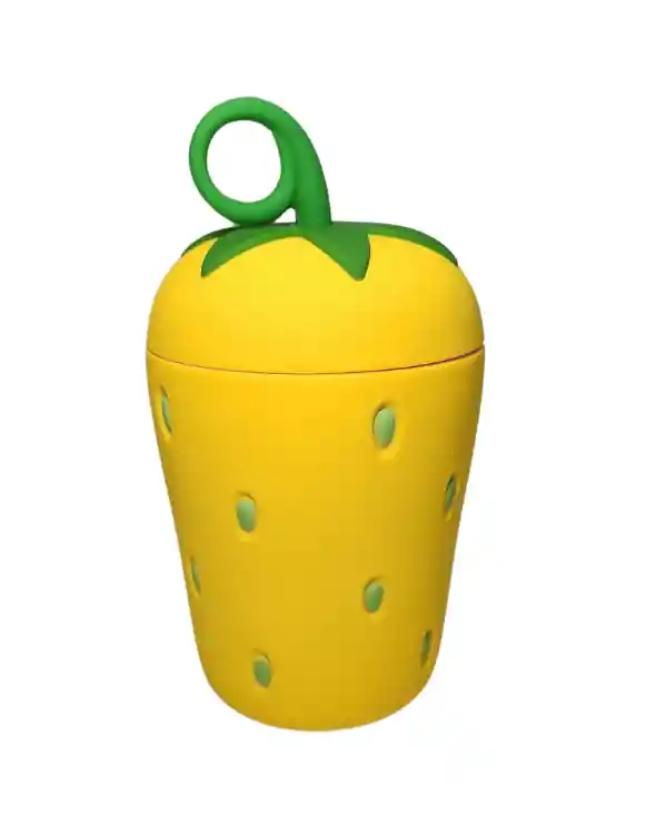 Vaso hermético de vidrio recubierto de plástico en forma de piña, sistema rosca para apertura de tapa