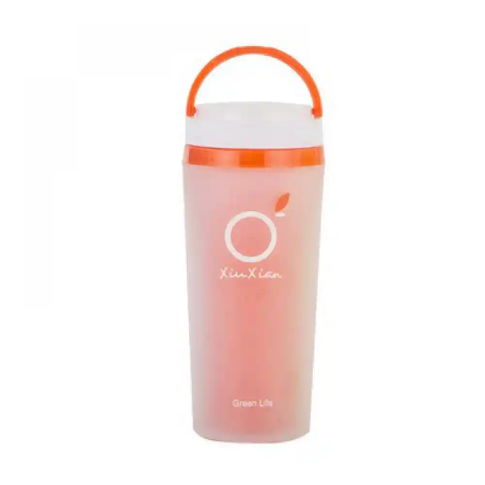 Termo Deportivo Botella 400ML Compartimiento Proteína Manija 9058 Este vaso tipo fozen de doble pared con asa de plástico es ideal para llevar a tus paseos, senderismos, camping entre otros. El vaso incluye un compartimiento en la tapa para guardar algún suplemento o polvo para mezclar en el momento de tomarlo. Con una manija de agarre en la tapa para su fácil transporte. - Marca: Xin Xian. - Vaso en plástico resistente PP. - Tapa con un compartimiento para guardar algún suplemento o polvo. - 100% a prueba de fugas para evitar fugas y derrames. - Boquilla en forma de rosca, sin pitillo. - Capacidad: 400 ml. - Medidas Botella: 18,5 cm Largo X 8 cm Diámetro. - Libre BPA. - Color: Naranja, Verde. El Paquete Incluye: - Termo Xin Xian 400 mL.