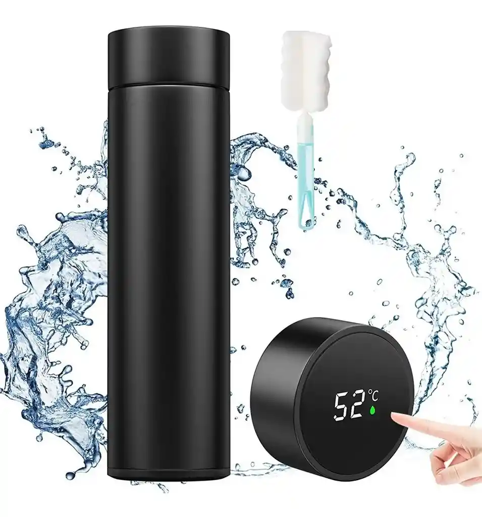 Termo Digital LED de Acero Inoxidable, doble pared, pantalla de temperatura** - Material: Acero Inoxidable 304 apto para alimentos. - Indicador de Temperatura LED: La pantalla muestra la temperatura interna del líquido. - Seguro y fácil de usar. - Capacidad: 500 ml - Libre de BPA - Tecnología de doble pared - Tamaño: 22,8 x 6,5 cm
