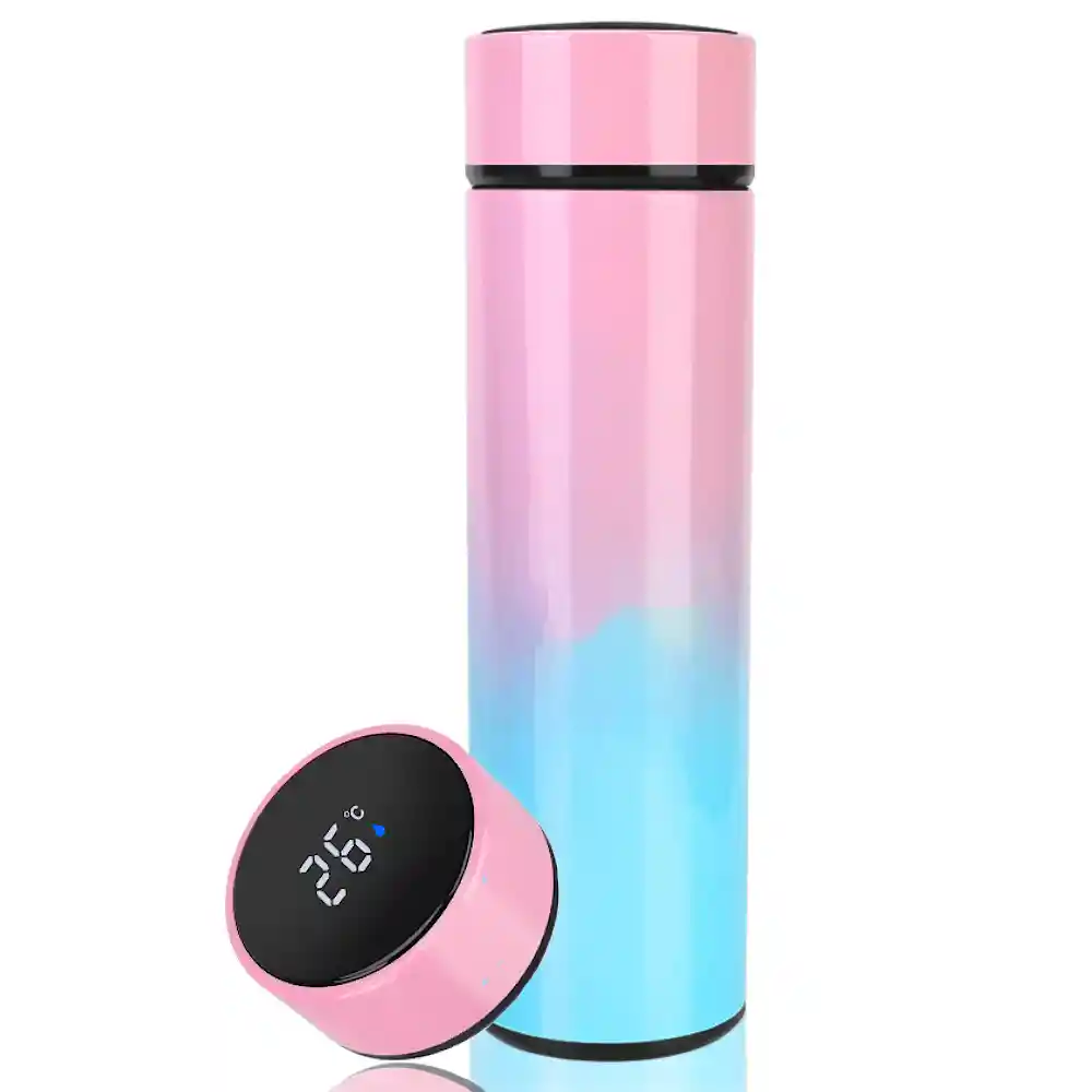 Termo inteligente medidor LED para frío y calor !!! En acero inoxidable!! Botella térmica, a prueba de fugas, 304 de acero inoxidable, doble capa, 500ml, botella de agua aislante al vacío LED para gimnasio, con pantalla de temperatura inteligente Característica: 1. Seguro y duradero: la superficie interior y exterior de acero inoxidable 304 es completamente resistente a la oxidación y la corrosión. La boca redonda y suave de la botella puede ser cómoda de beber desde cualquier lado. Puede mantener 12 horas de calor/12 horas de frío una vez sellado. 2 pantalla inteligente de temperatura: sensor de temperatura de la batería del botón CR2032 integrado, solo tiene que tocar ligeramente la parte superior de la tapa de la botella para obtener la temperatura del agua en la botella, te permite beber a una temperatura adecuada. 3. a prueba de fugas y desbordamiento: el diseño de capas doble es efectivo a prueba de fugas y desbordamiento, asegurando un sellado perfecto y confiable después del bloqueo, puede colocarlo en cualquier espacio. 4. Resistencia al deslizamiento: la parte inferior del matraz al vacío es estable, antideslizante y resistente al desgaste, no es fácil de voltear. Puedes llevarlo fácilmente en la mano, conducir o meterlo en una bolsa. 5. El tamaño es de 230*65*65mm y el peso es de 270g. CUANDO REALICES LA COMPRA POR FAVOR ESCRIBIR UN MENSAJE CON EL COLOR QUE DESEAS