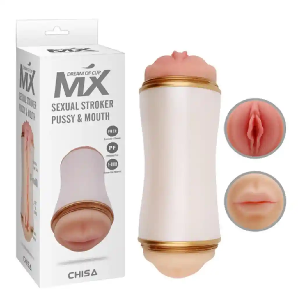 EMPAQUE 100% DISCRETO MX DREAM OF CUP......Con el termo masturbador con doble sensación Vagina-Boca realista Dream of Cup, estás a punto de embarcarte en un viaje de sensaciones lujuriosas, dulce masturbación y orgasmos increíbles. El Grip Vagina-Boca no solo es increíblemente realista y está hecho para parecer real, sino que también disfrutará de su fantástico túnel interior con una textura única diseñada para una estimulación máxima, imitando la apariencia de la piel humana. El material suave es ceñido y tu pene se sentirá como en casa con cada golpe a medida que avanzas a través de las cámaras internas diseñadas para las máximas sensaciones. Con solo un poco de lubricante a base de agua, tu pene se deslizará aún mejor. Después de su uso, límpialo a fondo con agua tibia y un jabón suave y déjalo secar al aire antes de guardarlo. MODELO: MX DREAM OF CUP Características: Material: piel de T + ABS. Tamaño: 21,6 cm * 7,5 cm Peso: 436 kg Color: Piel Libre de ftalato Fabricado en USA.