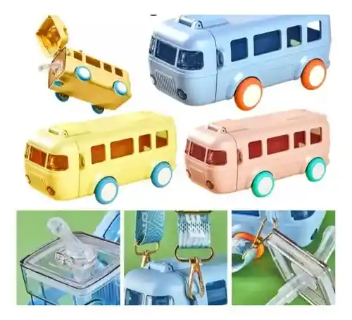 Hermoso termo infantil, conserva sus bebidas frescas y con un espectacular diseño dale a tus hijos lo mejor en este regreso a clases El increible carrito de agua viene con correa cargadera para poder llevar las bebidas a cualquier lugar Medidas: 19cm x 7.8cm x 7.2cm