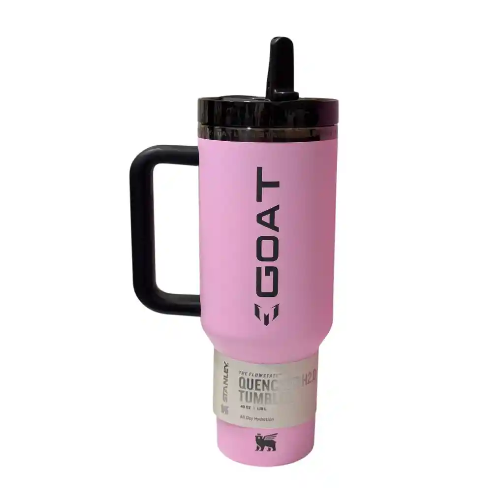 Nueva referencia TERMO MESSI GOAT STANLEY Hidrátate en negro metalizado y en rosa Messi GOAT. •El vaso de 40 onzas Quencher Pro Tour cuenta con una tapa Flip Straw a pruebas de fugas. •Bebe rápido: solo tienes que levantar la pajita integrada y alimenta tu dedicación y fuera del campo. •Mango de agarre cómodo •Réplica 1.1 contramarcado •Capacidad 40 onzas •Viene en caja •Mantiene su Temperatura hasta 10 horas