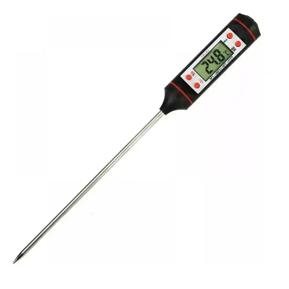 Lectura instantáneaLa pantalla LCD muestra resultados precisos de temperatura en unos segundos, el enganche hace que el termómetro de cocción perfecta para carne, aves de corral, líquidos, barbacoa, asar, hornear, hacer dulces y cualquier preparación.Diseño:La punta de la sonda esbelta Evita poner enormes agujeros de perforación en sus alimentos, lo que significa que los jugos de carne permanecen en la carne donde pertenecen.Fácil de usarBasta con insertar la sonda de temperatura larga en su comida/líquido y conseguir alimentos perfectamente cocinados cada vez. La sonda de acero inoxidable de 10 cms es lo suficientemente larga para evitar que no te quemes las manos mientras Midas. Fácil de clavar en la comida con la punta de la sonda delgada, puede obtener una temperatura más precisa y rápida.Ampliamente utilizadoTrabajar en todo tipo de alimentos, facilita la cocción y la parrilla. Perfecto para uso en interiores o exteriores. ¡Al instante te convertiste en tu propio chef Maestro de la cocina!Almacenamiento práctico casoPon tu termómetro en esta carcasa delgada y exclusiva que viene con un mango de fácil agarre.Rango de medida:-50°C -- 300°C-58°F -- 572°F•Guarda en la memoria la ultima medida de temperatura.•Alerta de bateria baja.•Autoapagado a los 10 minutos de no usarse.•Sistema de medición por grados Centrigrados o Farenheit.- voltaje: 1.5 v- memoria de la medida anterior- longitud: 225 milímetros- peso: 18 gramos- color: negro