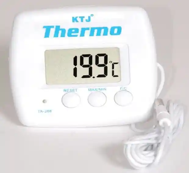 El termómetro de nevera KTJ Thermo TA-268 es un dispositivo digital con sonda para medir la temperatura interna de refrigeradores, congeladores u otros equipos, registrando los valores mínimos y máximos