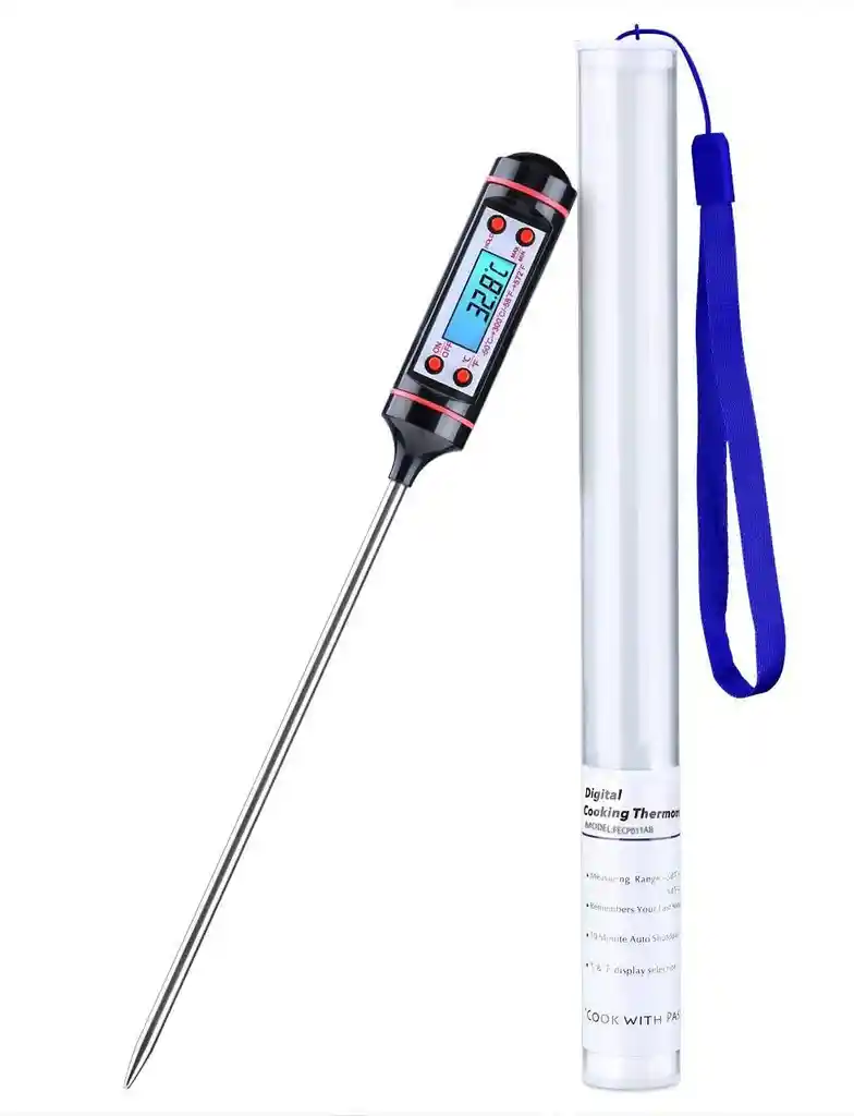 Un termómetro de punzón es un dispositivo de medición de temperatura, usualmente digital, que utiliza una sonda puntiaguda para tomar lecturas precisas del interior de alimentos, líquidos u otros materiales semisólidos.