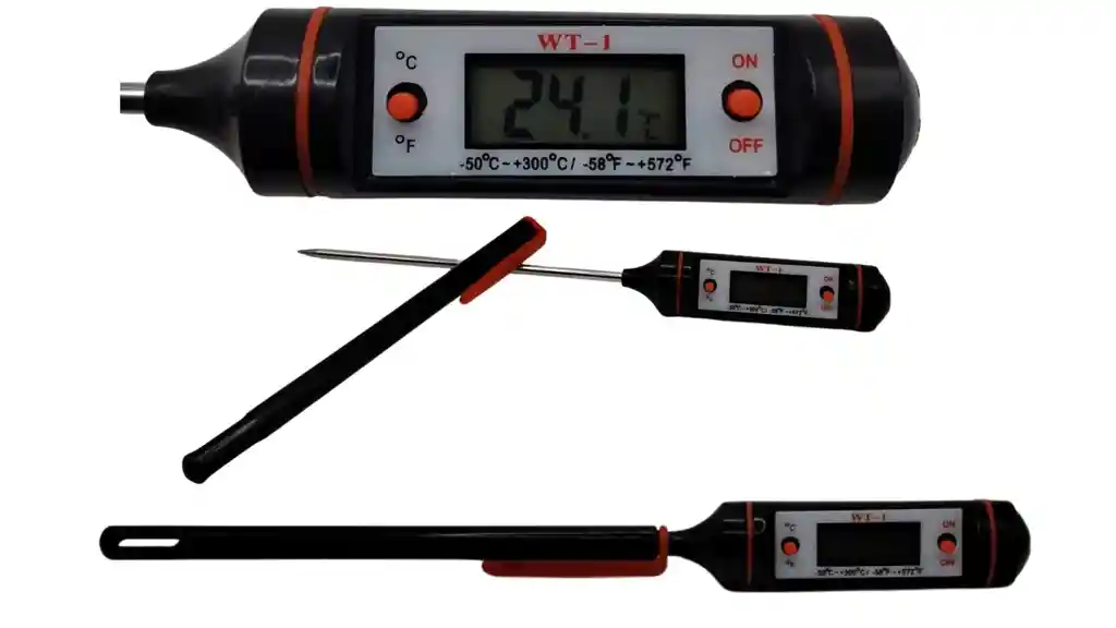 Descripción del producto Termómetro Digital de Alimentos WT-1 El termómetro digital de alimentos WT-1 es una herramienta práctica y precisa para medir la temperatura de alimentos sólidos y líquidos en pocos segundos. Ideal para cocina, repostería, carnes, bebidas, aceites, agua, leche y más. Su diseño con sonda de acero inoxidable permite una medición rápida, segura e higiénica, siendo perfecto tanto para uso doméstico como profesional. Este termómetro digital es fácil de usar, cuenta con pantalla LCD que muestra la temperatura de forma clara, permitiendo un control adecuado de la cocción de los alimentos y evitando que queden crudos o sobrecocinados. Es ligero, portátil y funciona con batería, lo que lo hace muy práctico para cualquier cocina. Es una excelente herramienta para chefs, cocineros, reposteros o cualquier persona que desee controlar la temperatura de los alimentos con precisión. CARACTERÍSTICAS: Color: Negro Pantalla digital LCD Sonda de acero inoxidable Medición rápida de temperatura Botón de encendido y apagado Fácil de usar Condición del producto: Nuevo Medidas aproximadas: 23 cm de largo ¿QUÉ INCLUYE TU PRODUCTO? 1 Termómetro digital de alimentos WT-1 1 Protector para la sonda Empaque blister MMMMMMMMMMMMMMMMMMMMMMMMMMMMMMMMMMMMM MÁS DETALLES: Condición: Nuevo MAS INFORMACIÓN DE NOSOTROS Somos importadores directos desde China. Cumplimos con distribuir a todo el país. Estamos ubicados en Bogotá, somos tienda virtual y física. PRODUCTOS AL POR MAYOR Y DETALLE Somos una empresa importadora y comercializadora de productos de alta calidad de varias categorías como: belleza, tecnología, hogar, juguetería, cuidado personal, entre otras.