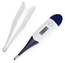 Termómetro digital con sonda flexible, que tiene la medición precisa de la temperatura corporal: oral, axilar con 10 segundos. • Memoria automática del último resultado • Apagado automático • Punta flexible para adaptarse al cuerpo