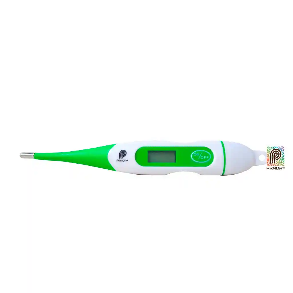 Termómetro digital con punta flexible, nuevo modelo, visor de fácil lectura, rápido y exacto, fabricado en material resistente a desinfectantes habituales e irrompible. COMPONENTES: Plástico, pantalla LCD MODO DE USO: Este termómetro permite conocer la temperatura del animal de manera rápida, precisa y segura. Mide la temperatura rápidamente de 32° a 42° C, alarma acústica que permite saber la medida lista. Es cómodo, impermeable y muy fácil de leer, memoria última medición. DISEÑO: Termómetro digital flexible VETERINARIO, de cubierta plástica con pantalla de cristal líquido, color blanco lavable.