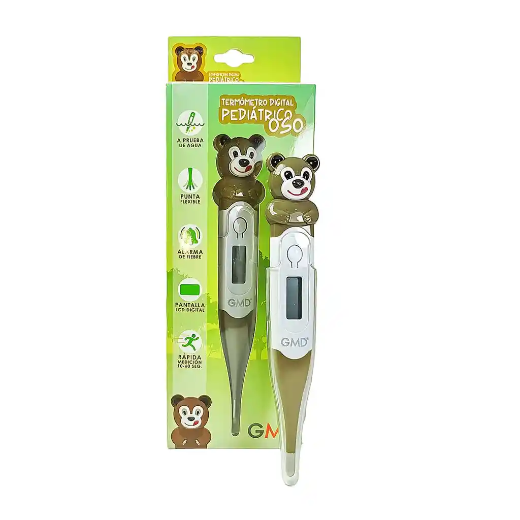 Ligero y compacto para facilitar su uso Ofrece lecturas de medición rápida, segura y confiable Ideal para bebés y niños Pantalla LCD digital, en grados Celsius y Fahrenheit Punta flexible A prueba de agua Señal de alarma para temperaturas altas Memoria de la última lectura Libre de latex Apagado automático Batería incluida