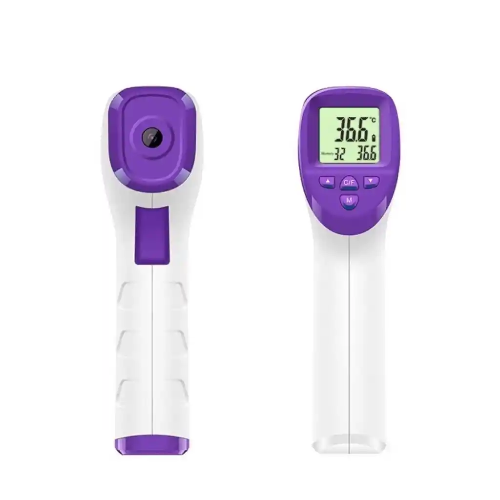 "Medición rápida de la temperatura: tiempo de medición en 1 segundo. Medición de temperatura en modo dual: puede medir la temperatura del cuerpo humano / temperatura del material /temperatura del agua / temperatura ambiente. Pantalla grande: pantalla LCD de pantalla grande, luz de fondo blanca, se puede mostrar claramente bajo cualquier luz. Ahorro de energía fácil de usar: medición con un botón, operación simple y conveniente; apagado automático de ahorro de energía durante 15 segundos sin operación. Vida ultra larga: instale 2 baterías AA, puede usarse más de 100,000 veces, y la vida útil del producto es> 3 millones de veces. Pantalla grande: pantalla LCD de pantalla grande, luz de fondo blanca, puede mostrar claramente el valor medido bajo cualquier luz." "Multifuncional-Cinco funciones principales: libre de contacto, medición de temperatura de 1 segundo, modo silencioso. Sin contacto: el termómetro mide la temperatura al inhalar el calor infrarrojo emitido por el cuerpo humano. De uso saludable y confiable. Conveniente para medir: alinee la sonda del termómetro en el centro de la frente y mantenga una distancia vertical de aproximadamente 3-5 cm. Presione ligeramente, y el valor de medición se anunciará con un pitido después de aproximadamente 1 segundo. Rápido y preciso. Tiempo de uso prolongado: 15 segundos sin usar el programa para apagarse automáticamente para evitar la pérdida de la batería, Alimentación por: 2 * baterías AAA (no incluidas)."