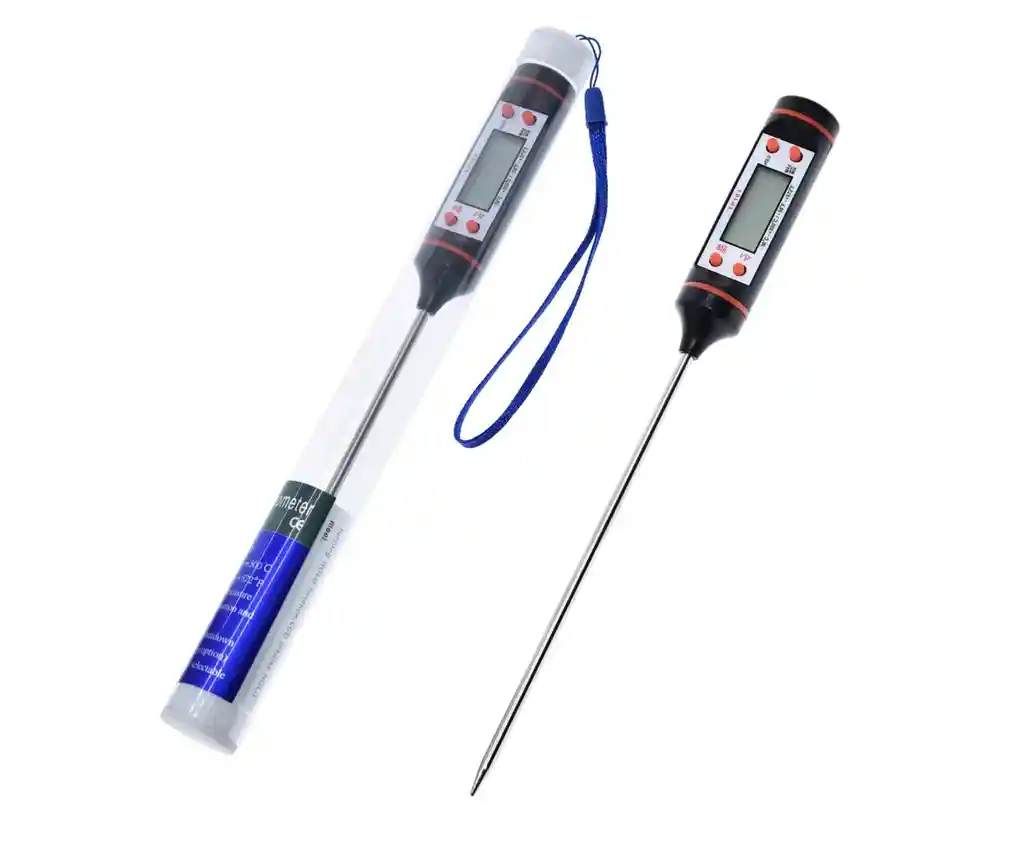 Medición de temperatura: -50 °C~+300 °C (-58 °F~572 °F) Precisión de temperatura: ±1 °C/°F Modo de ahorro de energía: función de apagado automático de 10 minutos Fuente de alimentación: 1,5 V (AG13) ×1 clave Alcance:Líquidos y temperatura de los alimentos Características: 1. Teclas ON/OFF: conmutación 2. Tecla °C/°F: el modo de visualización, este botón puede ser función de conversión °C/°F 3. Tecla HOLD: condiciones de temperatura en la pantalla, presione la pantalla LCD puede mantenerse en el estado HOLD, luego una medición de la temperatura de recuperación para detectar cuando se ejecuta la función HOLD, la pantalla LCD HOLD cumple con la tecla 4.MAX / MIN para ver el máximo / mínimo LA COMPRA INLUYE: 1x TERMOMETRO COCINA SENSOR TEMPERATURA TP101