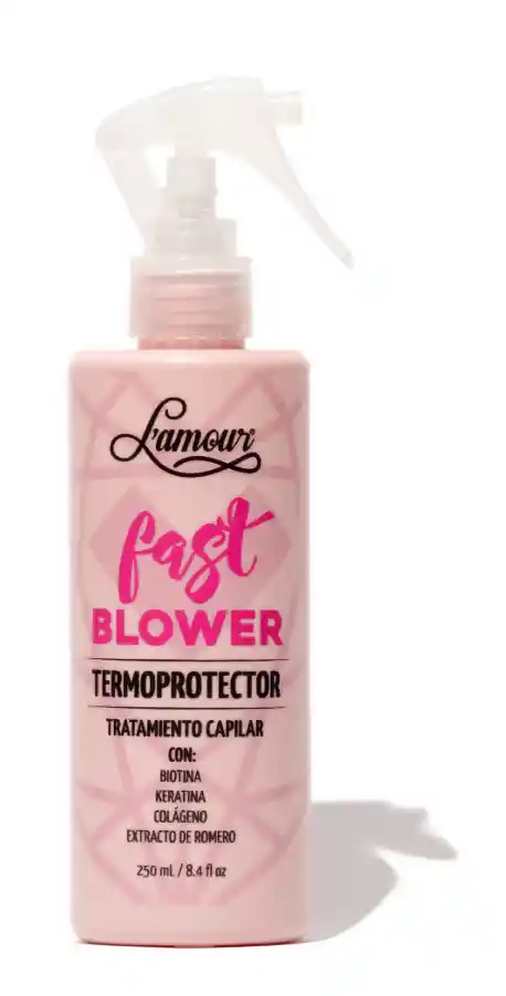 Protección térmica hasta 450°F. Nuestro Fast Blower es un termo protector diseñado para proteger tu cabello del daño causado por el calor de secadoras, planchas y rizadores. Con una consistencia acuosa de rápida absorción que no deja residuos cubre tu cabello con una barrera protectora, ayudando a evitar la resequedad y el quiebre, mientras mantiene tu cabello con un delicioso aroma.
