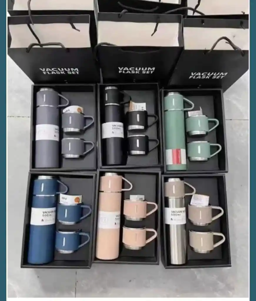 Descripción DESCRIPCIÓN dejar color de preferencia, colores sujetos a disponibilidad Este set de Termo y tazas es ideal para mantener tus bebidas a la temperatura deseada. Gracias a su tecnología de aislamiento al vacío, puede retener la temperatura de las bebidas frías o calientes durante un largo periodo de tiempo. Está fabricado con acero inoxidable de alta calidad, lo que garantiza su durabilidad y resistencia a la oxidación, deformaciones o roturas con el uso regular. El set incluye 3 tapas de tazas de viaje, que también pueden funcionar como tazas de servicio de aislamiento térmico. CARACTERISTICAS - Colores disponibles: Azul, negro, rosa, Beige, verde. - Material: Acero inoxidable - Capacidad: 500ml - Dimensiones del Termo: 23cm x 6,5cm