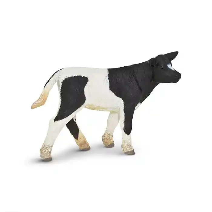 Las Holsteins son vacas lecheras increíblemente populares, que representan el 90% de los rebaños lecheros en los EE. UU. Un ternero recién nacido pesa 90 libras y consumirá 50 libras de alimentos cada día durante su crecimiento inicial hasta que alcance un peso promedio de 1400 libras. Nombre Científico: Bos taurus Características: Al igual que todas las pantorrillas, este Holstein tiene piernas desproporcionadamente más largas, una cola más corta y un hocico más corto. De lo contrario, es muy similar a sus padres. Tamaño y color: esta pantorrilla Holstein es en blanco y negro y mide 3 ¼ pulgadas de largo, casi exactamente el largo de una tarjeta de crédito. El ternero Holstein es parte de la colección Safari Farm Todos nuestros productos no son tóxicos y no contienen BPA. . EDAD: 3 años en adelante. TAMAÑO EN CM 8.26 L x 2.92 W x 5.46 H