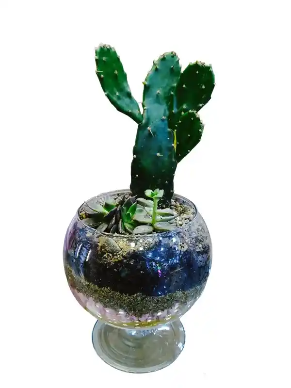 LINDO TERRARIO EN COPA DE VIDRIO IDEAL PARA DECORAR TUS ESPACIOS EN EL HOGAR Y ZONA DE TRABAJO SON 5 VARIEDADES DE SUCULENTAS/CACTUS DE DIFERENTE COLOR PONER AGUA CADA 5 DIAS CON UN ASPERSOR, MOJANDO BIEN SUS PIEDRAS DECORATIVAS NO PONER BAJO LA LUZ DIRECTA DEL SOL ES UN JARIN DE INTERIOR