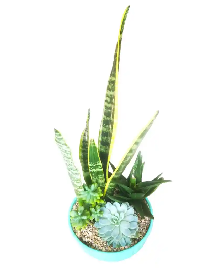 Los terrarios son piezas decorativas que se vuelven pequeños pulmones del hogar (o del sitio donde se ubiquen). Se trata de jardines en miniatura muy fáciles de mantener y es que no requieren de mucha agua y solo tienen que estar en espacios con un poco de iluminación. Encantador jardín que viene en matera redondo con cuatro tipos de suculentas seleccionadas. Esta decorada con arena y piedras naturales que resaltarán su belleza. Decora tu hogar con este pequeño mundo. Al momento de la compra le ofrecemos al cliente una ficha técnica con los cuidados y curiosidades de la planta.