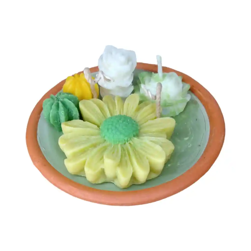 imagina una vela aromática en forma de un terrario que despierta los sentidos y embellece cualquier espacio. Esta vela está diseñada para evocar la frescura y la serenidad de un ambiente natural aportando un toque unico a cualquier espacio. La vela esta elaborada de cera, lo que la hace unico y duradera. Su forma está moldeada para parecerse a una planta colorida y real. El aroma que emana es una delicada mezcla de notas herbales, florales y cítricas. Esta vela aromática en forma de flor es el regalo adecuado para cualquier ocasion asi mismo es la mejor eleccion a la hora de decorar cualquier espacio no solo aromatiza sino que tambien aporta un toque coloriudo y natural.