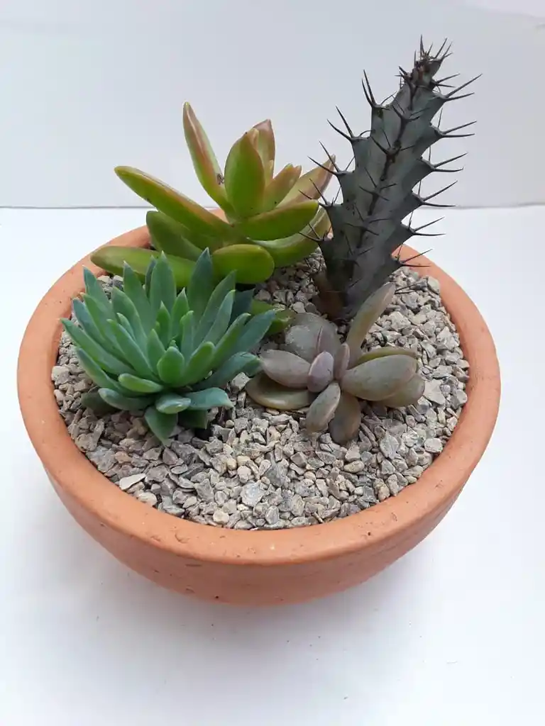 Terrario con un mix de suculentas coloridas requieren sol directo riego una vez por semana