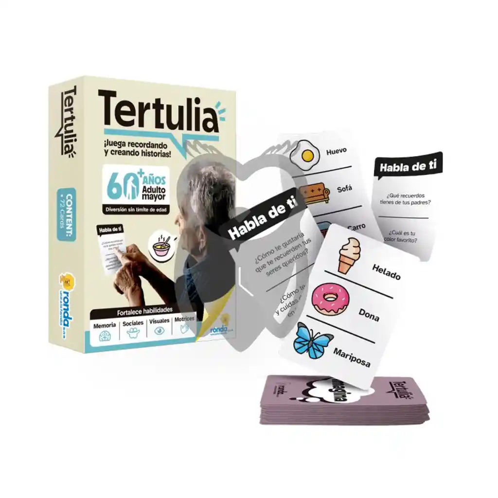 Diviértete en familia y con amigos con este espectacular juego de mesa Tertulia 60+ ¡Juega recordando e imaginando! Refuerza habilidades de Memoria y Visuales. Ayudan al desarrollo de sus capacidades motoras, mentales y sensoriales. Desarrollan la concentración, la memoria, la observación y la imaginación. Muestran cómo resolver problemas, elaborar estrategias y tomar decisiones. *Diversión *Juego de mesa *Adulto Mayor *Concentración *Lenguaje *Motricidad Contenido del producto : *72 Cartas Edad minima recomendada : 18 + Cantidad de jugadores : 1 +