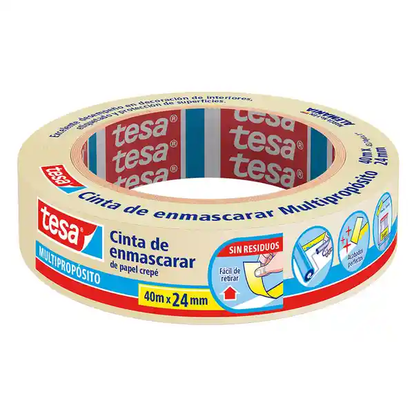 Cinta Para Enmascarar de Uso General de Papel Crepado Ideal Para Trabajos de Enmascaramiento y Marcación. Fácil de Aplicar Debido a su Buena Conformabilidad y Flexibilidad. Especial Para Marcado y Protección en Proyectos de Pintura en Interiores.