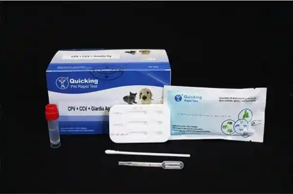 El test Quicking Parvo-Corona-Giardia Ag (o kits similares como Anigen/Uranotest) es un inmunoensayo cromatográfico rápido diseñado para la detección simultánea y cualitativa de antígenos de Parvovirus canino (CPV), Coronavirus canino (CCV) y Giardia en heces o hisopados rectales de caninos. mascotecno mascotecno +1 Esta prueba es fundamental para el diagnóstico diferencial de enfermedades gastrointestinales en perros, permitiendo identificar rápidamente la causa de vómitos y diarreas. Anilab Clínica Veterinaria Anilab Clínica Veterinaria