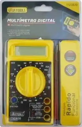 Multimetro Digital Medidor De Voltaje Marca: UYUSTOOLS Alta calidad de medición Es fácil de operar y las lecturas indicadas directamente en la pantalla. Se puede utilizar para revisar todo tipo de placas de circuitos. También es un instrumento de enseñanza ideal para los estudiantes. Exhibición del LCD de 15mm de alto. Exhibición máxima: 1999, exhibición auto de la polaridad.7 Prueba del montaje del diodo / prueba de la unión de P-N del transistor / prueba del transistor HFE. Prueba de continuidad con sonido del zumbador en el circuito. Indicación de baja tensión de la batería. Protección del fusible: F-200mA / 250V. Indicación de sobrepaso: Sólo figura "1" en la pantalla. Indicación de polaridad: "-" se muestra para polaridad negativa. Indicación de batería baja: - / +. Batería: 9V (BATERÍA INCLUIDA). Dimensión: Aproximadamente 138mm x 69mm x 31mm. El paquete incluye: 1 multímetro digital LCD + BATERIA 2 x cables de prueba. 1 x cubierta protectora