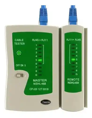 Practico y portable tester de continuidad para cables tipo RJ45 y RJ11 que te permitirá verificar si hay continuidad de un punto a otro. Conectaras cada extremo del cable al tester y podrás determinar si se encuentra ponchado o si no tiene continuidad. Muy practico para montaje de redes, cableado estructurado y verificación de conexiones de teléfono e internet. incluye un estuche de protección que evitara el deterioro o desgaste del dispositivo.