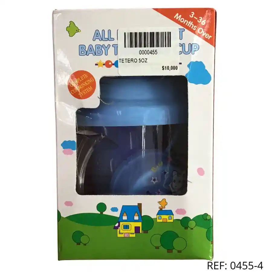 Tetero azul 5 oz con asas. Ideal para bebés de 3 a 36 meses. Práctico y cómodo.