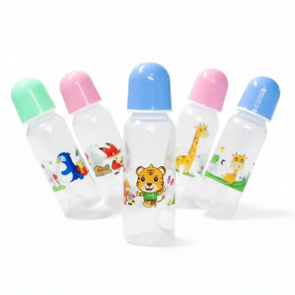Chupo 100% silicona. Diseñado para llenar y lavar fácilmente. Tapa protectora que evita derrames durante los viajes y su almacenamiento. Botella con diseños creativos para tu bebé, Capacidad de 8 oz Chupo de flujo medio.