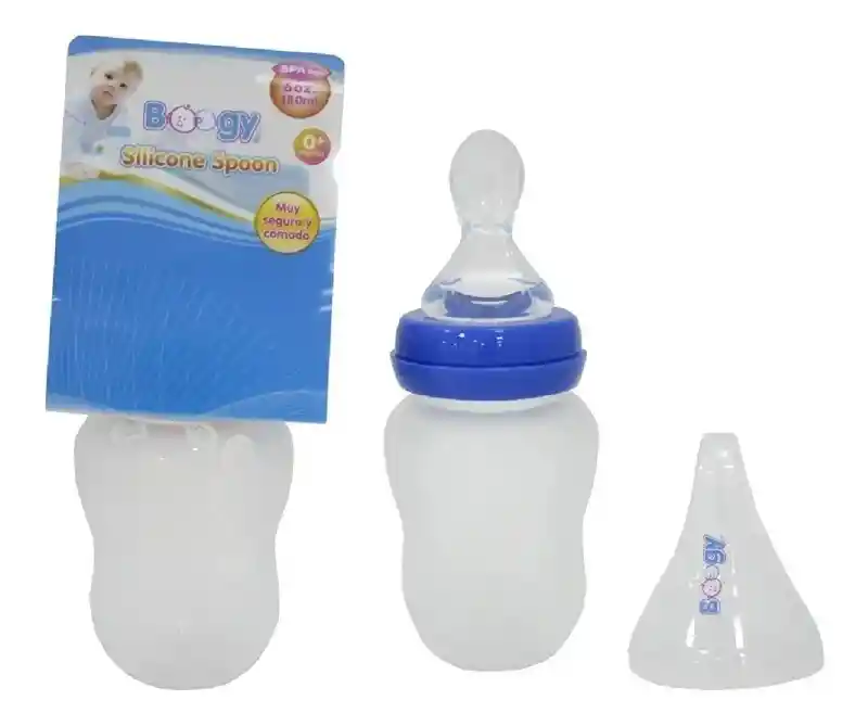 Cuchara tetero , fácil y práctica de usar, puedes utilizarla de manera especial en las siguientes situaciones: 1. Ideal para apoyarte cuando te encuentras en la etapa de transición en la comida de los bebés. 2. Te permite transportar y conservar la comida de tus pequeños o de pacientes con dificultad para consumir alimentos. 3. Excelente en la etapa de la lactancia materna. 4. Puedes usarla desde los 3 meses de edad en adelante. 5. Cuando tu bebé no quiere biberón tradicional. 6. Para darle los cereales, compota y sopas a tu bebé. 7. Si tu bebé come papilla, la puedes cargar en esta cuchara tetero. 8. Si tienes un adulto mayor, o una persona en situación de discapacidad a la que se le dificulta comer, este producto te ayuda para hacer más fácil su alimentación. Características: - Material: gel de sílice / PP - Volumen: 6 ONZAS - Rango de edad aplicable: 2 meses o más - Color: azul, rosa, - 100% nuevo y de alta calidad. - Certificación: CIQ, EEC, CE / EU, FDA, LFGB, SGS - Característica del material: sin ftalatos, sin PVC, sin nitrosamina, sin BPA - Diseñado para que mamá alimente al bebé de manera especial. - Está diseñado para evitar pausas en la alimentación del bebé, ya que no tienes que recargar la cuchara en el plato, sino que simplemente se aprieta un poco, y la comida sigue saliendo de inmediato. En definitiva, lo más importante es que las cucharas de silicona para bebés han sido consideradas como "el mejor biberón para lactancia materna". Nota: Los colores en el monitor de tu computador pueden diferir del producto real, dependiendo de la configuración de su monitor. Resistente al calor a 120 °C.- Libre de BPA calidad alimentaria alta transparencia material de silicona.- Suave, duradero, sano y fácil sacar, transportar y limpio