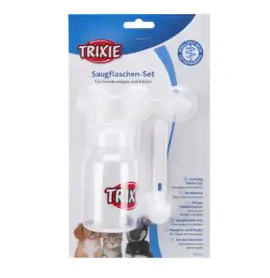 Este bonito biberón de la marca Trixie® es útil para mascotas recién nacidas o con dificultad para comer. Está hecho de plástico y contiene tres tetinas de silicona. Es fácil de usar y sencillo de limpiar, solo tienes que usar agua caliente y el cepillo que se incluye.