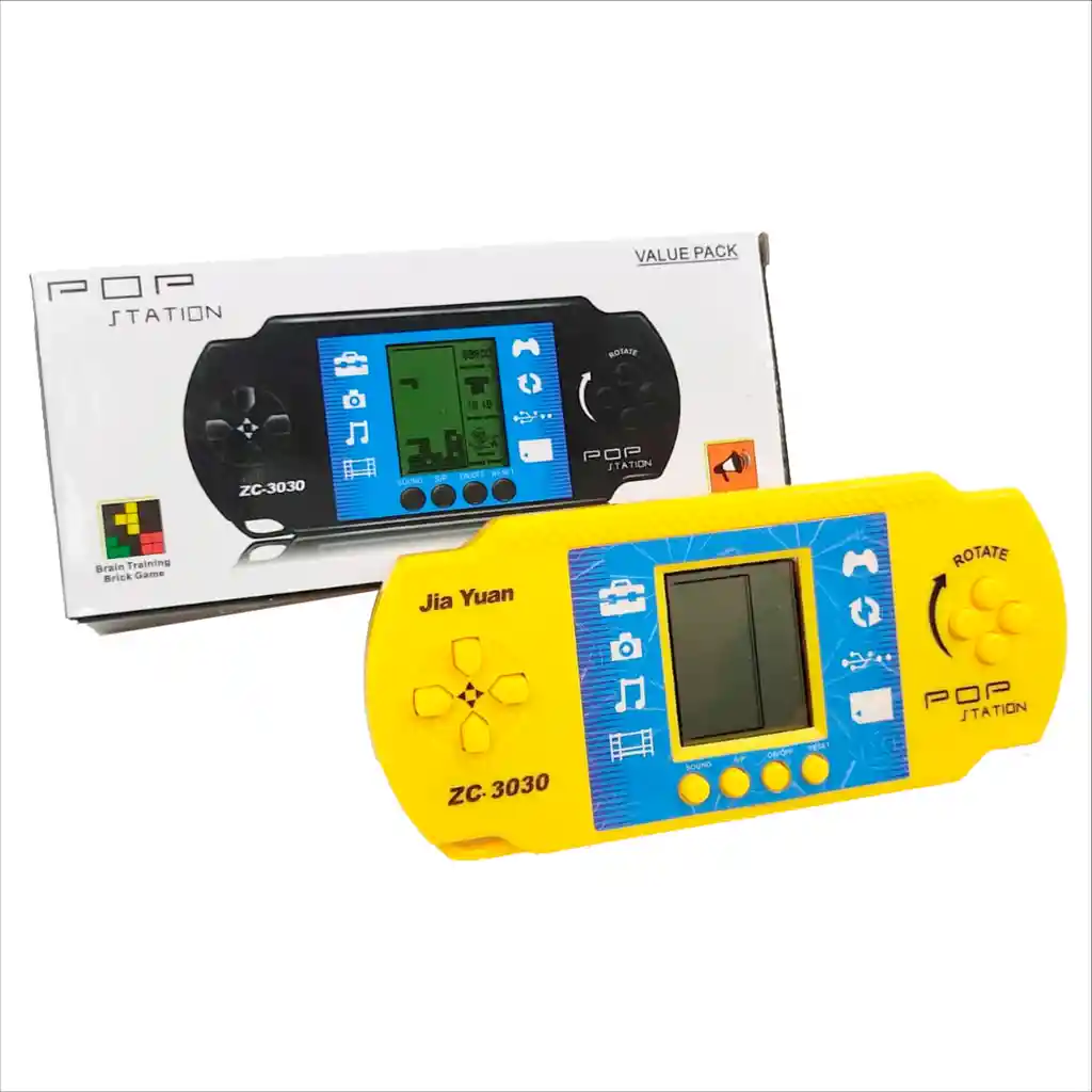 caracteristicas:Alimentado por 2 pilas AAA de 1.5V ( incluidas).Con bajo consumo de energía, ideal para viajar para matar el tiempo.Buen juego educativo consola de juguete electrónica portátil para niños.Jugar juegos electrónicos con sus hijos en casa, compartiendo su vida familiar.Juega a esta consola de juegos con tus hijos en tu tiempo libre.Deje caer su teléfono para acompañar a su hijo a abrir un juego educativo y ayudar a los niños a desarrollar inteligencia.Un gran juguete como regalo de cumpleaños o premio de juego para niños.Es hora de que tu pequeño juegue con algo interesante como este juego de ladrillos POP Staion que te ofrece PLanet of Toys. Construido con un material de alta calidad, este juguete seguramente servirá a su hijo durante mucho tiempo. Vibrante y elegante en su fabricación, este juguete es una gran adición a la colección de juguetes de su hijo. El bebé puede sentarse y jugar con este juguete durante muchas horas sin aburrirse. Diseñado ergonómicamente, este juguete complacerá a su hijo hasta la médula. )