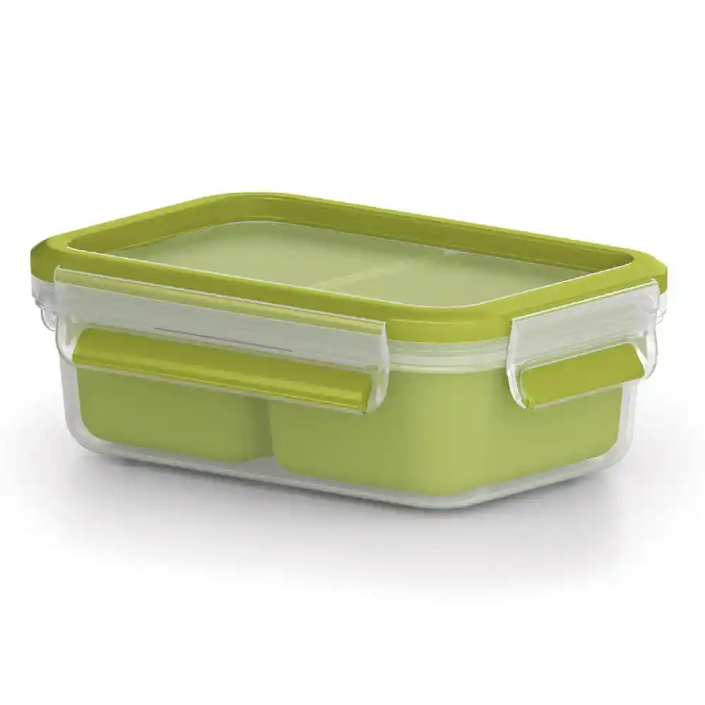 Recipiente Plástico Rectangular Con Capacidad de 0.55 Litros Con Dos Insertos Para Separar Tus Alimentos Para su Cómodo Transporte. Libre de Bpa. 100% Hermético, Higiénico y Fresco. Ideal Para Llevar Tus Snacks.