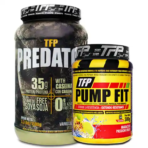 Contiene TFP Sport Proteína en Polvo Predator 3.3 Lb + TFP Sport Energizante en Polvo Pump Fit 300 g. TFP Predator Proteína Ganadora de Peso Secuencial, Alternada Con Pump Fit Extendedor de Resistencia.