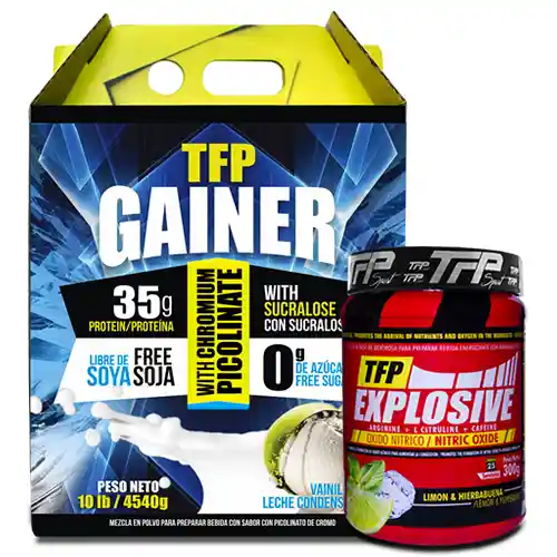 Kit Tfp Sport Incluye: Proteína Gainer 10 Lb + Aminoácidos Explosive 300 g. Especial Para Ayudar a Mejorar la Ganancia de Peso Corporal, Recuperar Las Reservas de Glucógeno y Optimizar la Producción Natural de Óxido Nítrico en Tus Entrenamientos.