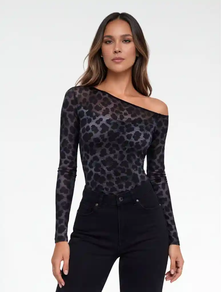 Un diseño asimétrico que roba miradas ✨ Transparencia en malla con estampado animal que estiliza y resalta tu silueta. Perfecto para looks de noche o para elevar un outfit básico. 🏃🏻♀ Tela con excelente elasticidad que se adapta al cuerpo sin marcar ✨ Diseño asimétrico que estiliza hombros y cuello ☀ Mesh suave, liviana y fresca ideal para todos los climas 👗 Cubre de la talla S a la XL 🧵 Hecho responsablemente por mujeres colombianas: moda con propósito 📏 Cubre de la talla S a la XL (talla única) 👖 Material: 93% poliéster, 7% spandex (forro y exterior). 📸 La modelo mide 1.70 m y usa talla SM