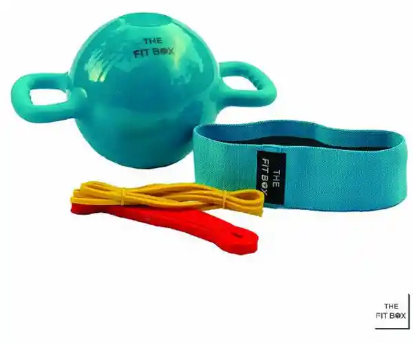 The Basic Fit Box Contiene: Power Band xs - Amarillo Power Band S Hip/Booty Band (Tensión Media) Water Fit Bell (Pesa Rusa de Agua)