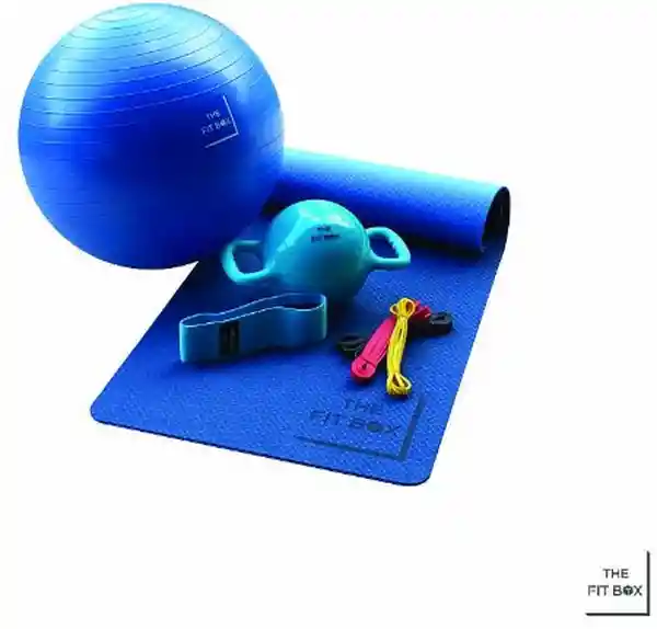 The Happy Fit Box Contiene: Power Band xs - Amarillo Power Band S - Rojo Power Band m - Negro Hip/Booty Band (Tensión Media) Water Fit Bell (Pesa Rusa de Agua) Yoga Mat de Alta Calidad Bola de Pilates