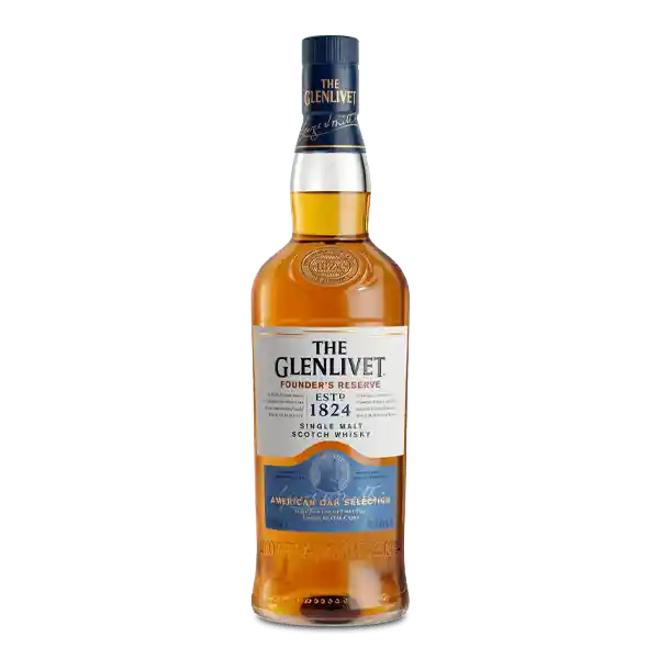 El whisky Glenlivet es un single malt elaborado con agua de los mismos arroyos de montaña de aguas cristalinas, en el mismo aire frío y puro, The Glenlivet Founder's Reserve es tan suave y afrutado como el whisky que salió por primera vez de los alambiques de cobre originales. El whisky escocés es de pura malta .