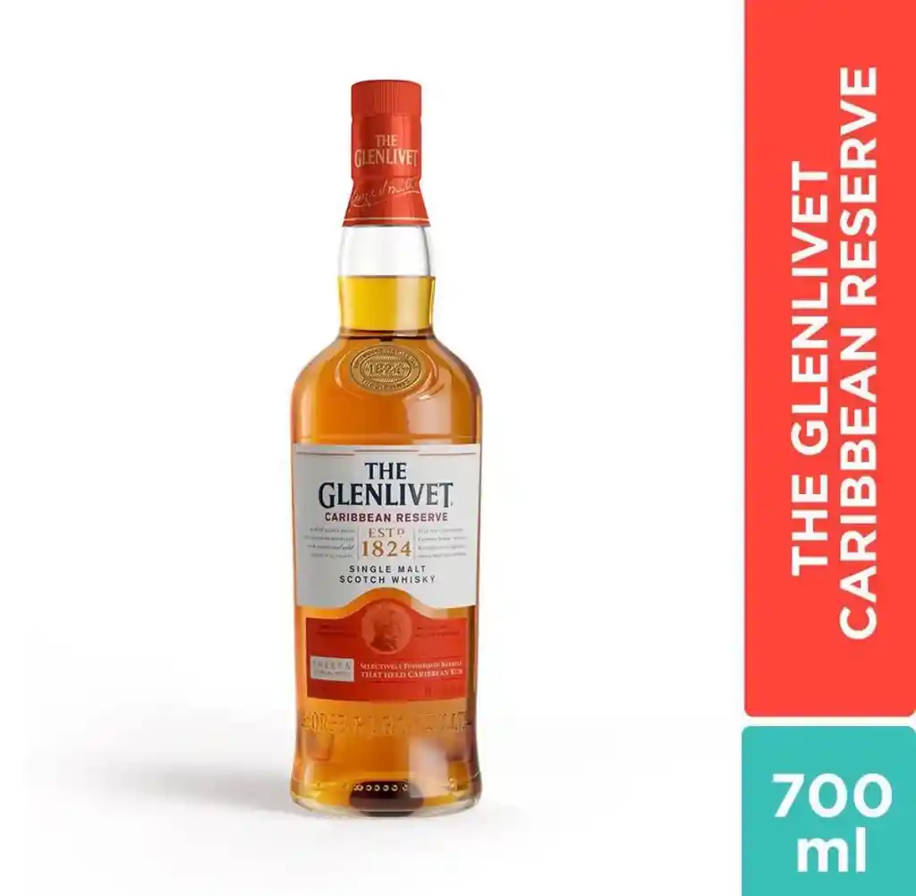 The Glenlivet Caribbean Reserve es un whisky escocés single malt de Speyside, caracterizado por un perfil vibrante y tropical, obtenido al finalizar su maduración en barricas de ron caribeño. Ofrece notas intensas de plátano maduro, caramelo, pera y vainilla, con un final suave, equilibrado y sedoso.
