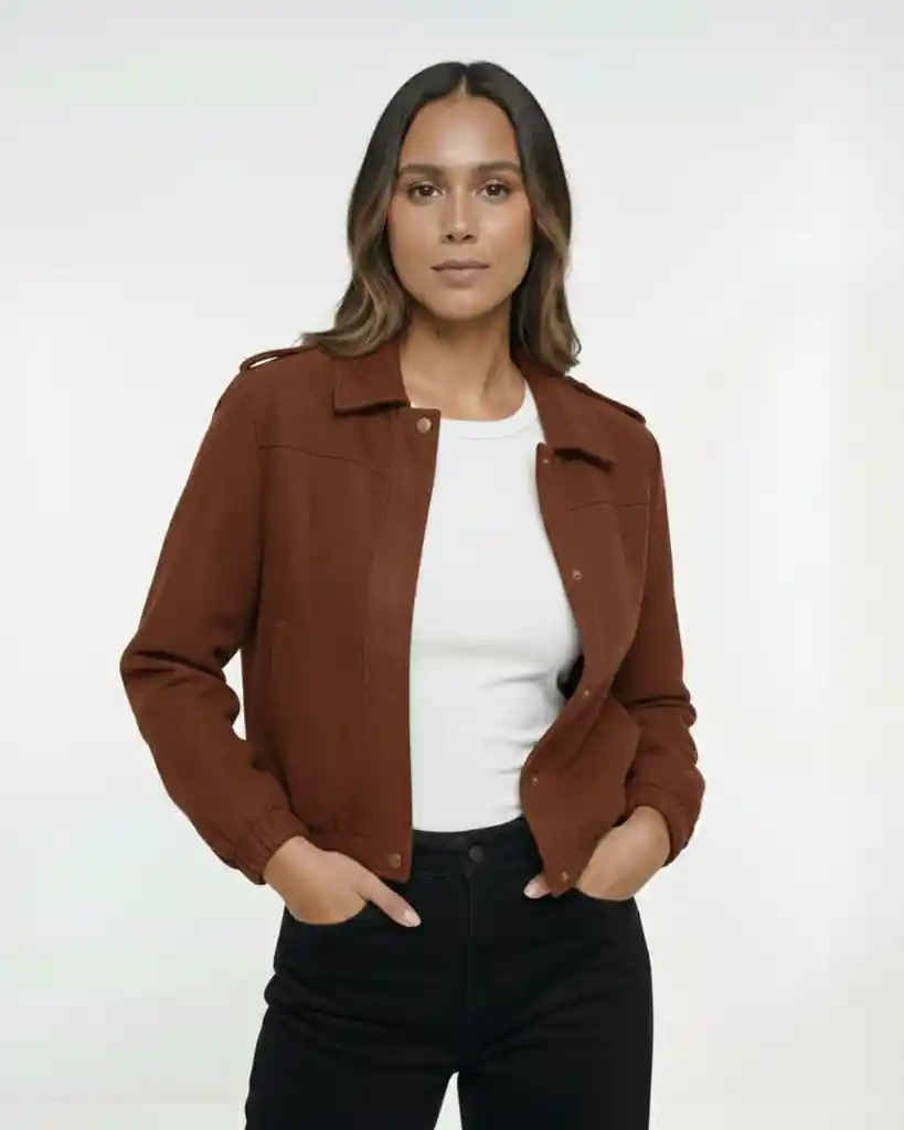 Chaqueta con diseño amplio, bolsillos frontales y broches metálicos que elevan cualquier look. Su caída suave y sus mangas estilo bomba la hacen perfecta para outfits cómodos y con estilo. 🏃🏻♀ Tela que no se arruga: perfecta para viajar 😏 Mangas bombas que puedes usar largas o medias. ☀ Tela suave y fresca, perfecta para todos los climas 👗 Cubre de la talla S a la XL 🧵 Hecho responsablemente por mujeres colombianas: moda con propósito 📏 Cubre de la talla S a la XL (talla única) U 👖 Material: gamuza sintética 📸 La modelo mide 1.70 m y usa talla U