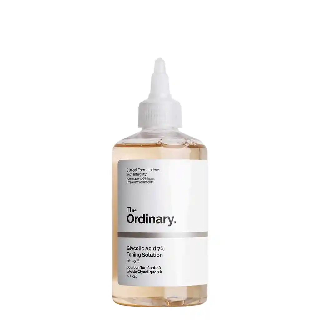 The Ordinary Glycolic Acid 7% 240ml The Ordinary. La solución de AHA trabaja para exfoliar suavemente la superficie de la piel, lo que ayuda a combatir la acumulación de células muertas que pueden contribuir a la opacidad, irregularidades en la textura y congestión. Con pH equilibrado para una eficacia óptima, el tónico con ácido glicólico está enriquecido con pimienta de Tasmania y aloe vera para ayudar a calmar la piel, junto con raíz de ginseng para promover un acabado radiante. Incorpóralo a tu rutina de cuidado de la piel para lograr una tez brillante, suave y de apariencia Beneficios Trabaja para aumentar visiblemente la luminosidad Cuenta con ácido glicólico para exfoliar suavemente la piel y mejorar la textura. Derivado de pepperberry de Tasmania ayuda a reducir la inflamación Incluye aloe vero calmante junto con aminoácidos nutritivos Fórmula vegana y libre de crueldad Modo de uso Úselo idealmente por la tarde, no más de una vez al día. Después de limpiar, empape una almohadilla de algodón con la fórmula y pásela por la cara y el cuello. Evitar el contorno de ojos y el contacto con los ojos. No enjuague. Continúe con tratamientos adicionales para la piel según sea necesario. El contacto del producto con la piel debe ser de frecuencia o duración limitada. Si se produce irritación, deje de usarlo y consulte a un médico. Use solo como se indica en la piel intacta. Se recomienda realizar pruebas de parche antes de su uso. Mantener fuera del alcance de los niños. Alerta de quemaduras solares: este producto contiene un ácido alfa hidroxi (AHA) que puede aumentar la sensibilidad de la piel al sol y, en particular, la posibilidad de quemaduras solares. Use protector solar, use ropa protectora y limite la exposición al sol mientras usa este producto y durante una semana después.