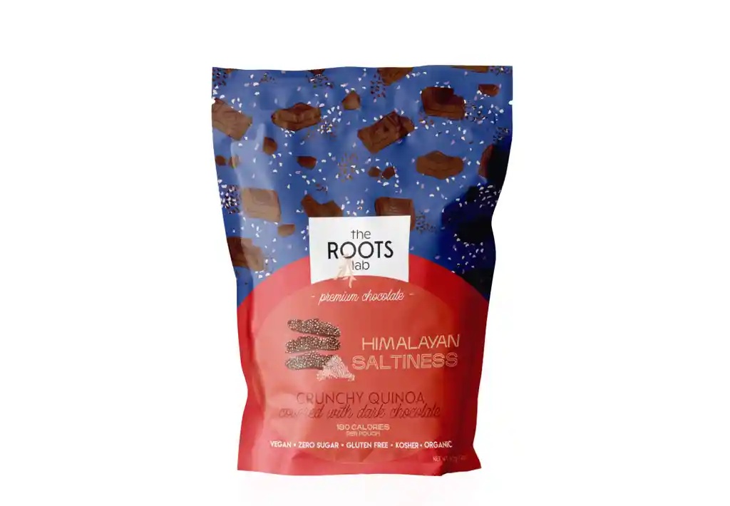 Pedacitos Crujientes de Quinoa Cubiertos Con Chocolate Premium Sin Azucar Nuestro Snack es Vegano Libre de Gluten Organico Kosher Sin Quimicos ni Conservantes Alto en Nutrientes y Bajo en Calorias. Cada Bolsa Tiene Únicamente 180 Calorias es Simplemente El Perfecto Snack Para Matar Esos Antojos Dulces y Sin Remordimiento.