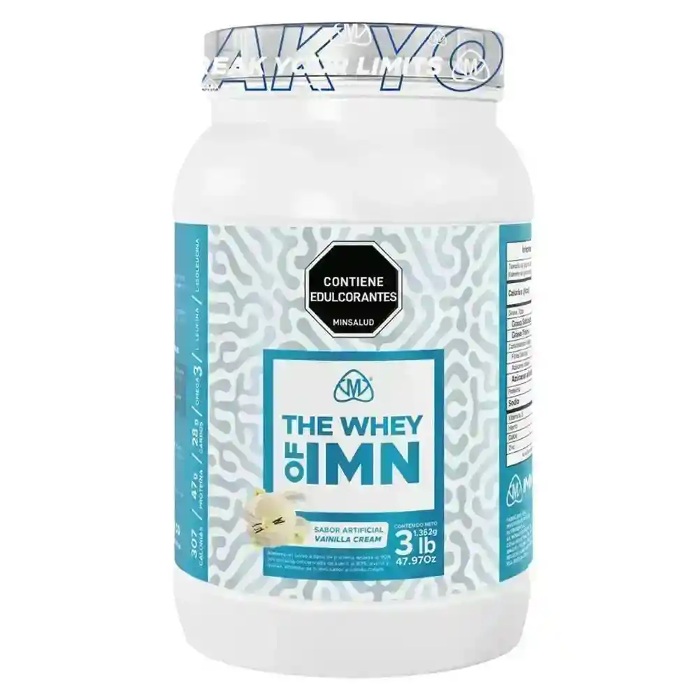 The Whey of IMN es un alimento en polvo con: Proteína aislada al 90%, con proteína concentrada de suero al 80% Avena Quinua Albúmina de huevo. Contiene por porción: 47 g de proteína 28 de carbohidratos 6g de amino blend CR 6 gr de BCaa´s. Endulzado con stevia MODO DE USO: Añadir 84 g (2 unidades) por cada 500 mL de agua. Dosificación diaria.